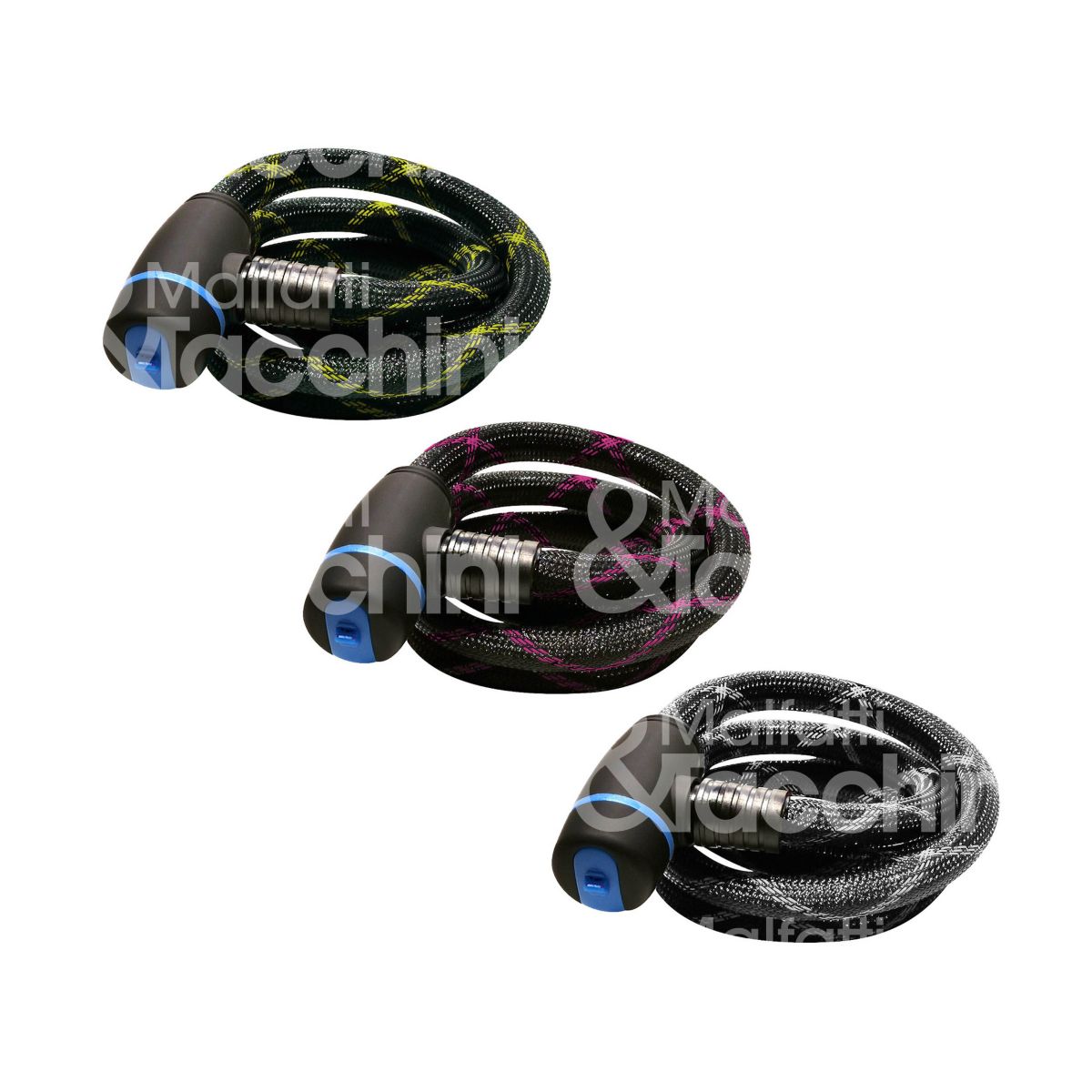 CAVO ACCIAIO A SPIRALE A CHIAVE Ø12 x 1200 mm Con sportellino antipolvere Rivestito in tessuto antigraffio Colori assortiti
