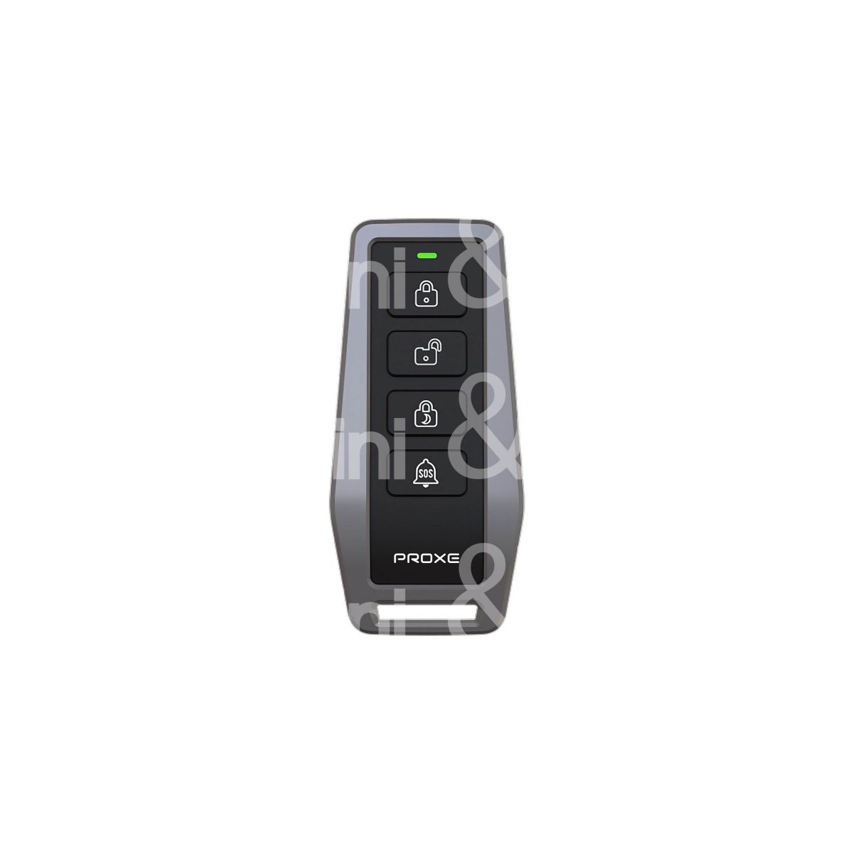 TELECOMANDO 4 TASTI PER ALLARME PROXIMA Il telecomando controlla lo stato dell'allarme, permette di attivare o disattivare l'impianto di allarme senza dover inserire alcuna password, utile quando l'impianto è utilizzato da più persone. 4 funzioni: attivazione totale, attivazione, perimetro, SOS, disattivazione. Dimensioni (PxAxL): 74 x 34 x 16 mm