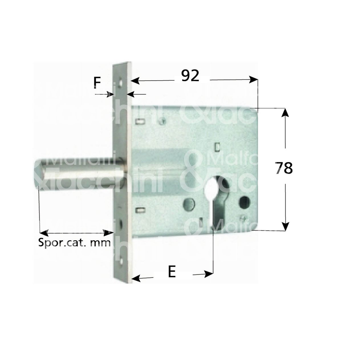 Mg 273600 serratura infilare per infissi legno/ferro 2 mandate cilindro sagomato 60 laterale sporgenza pistone 50 mm