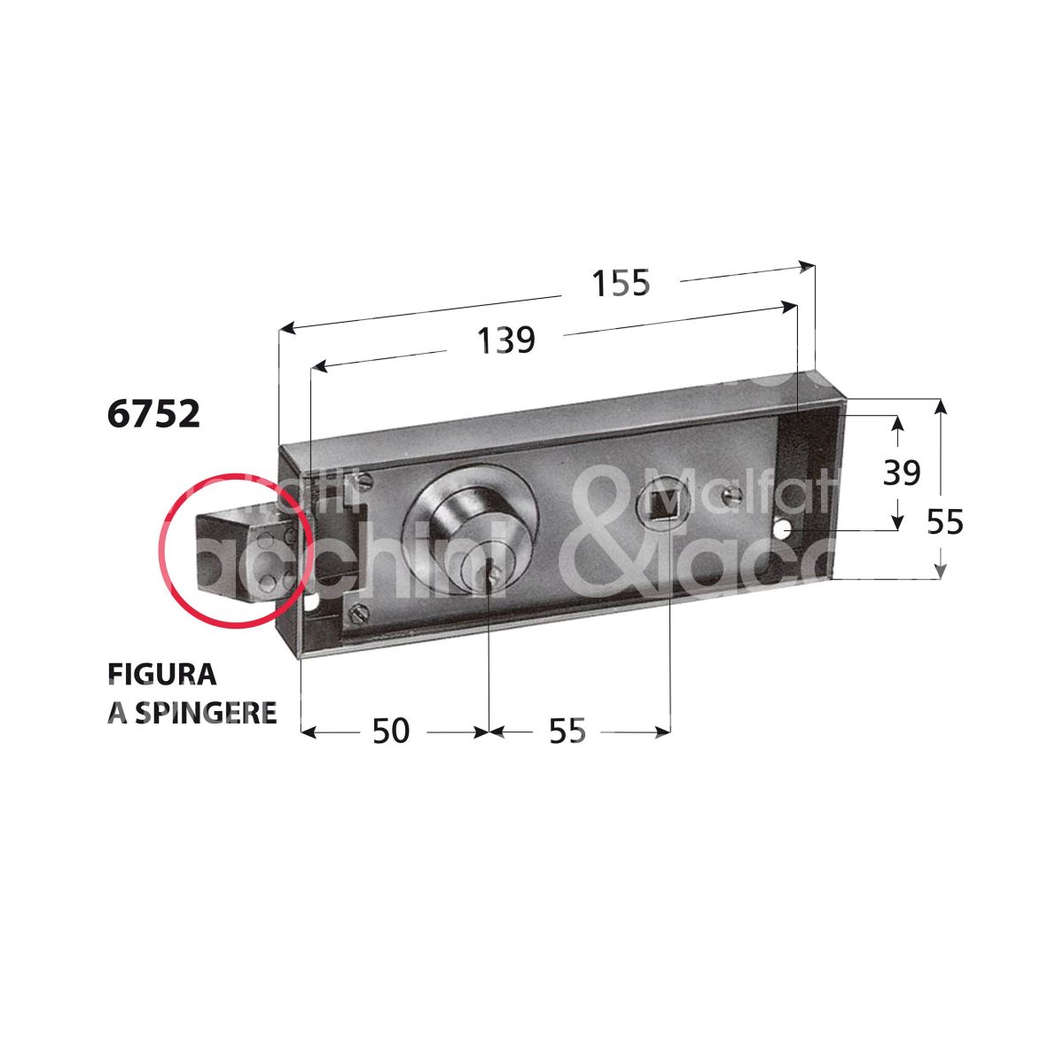 Prefer 6751002 serratura porte transito a tirare con scrocco quadro Ø cilindro mm 25 lunghezza mm 7