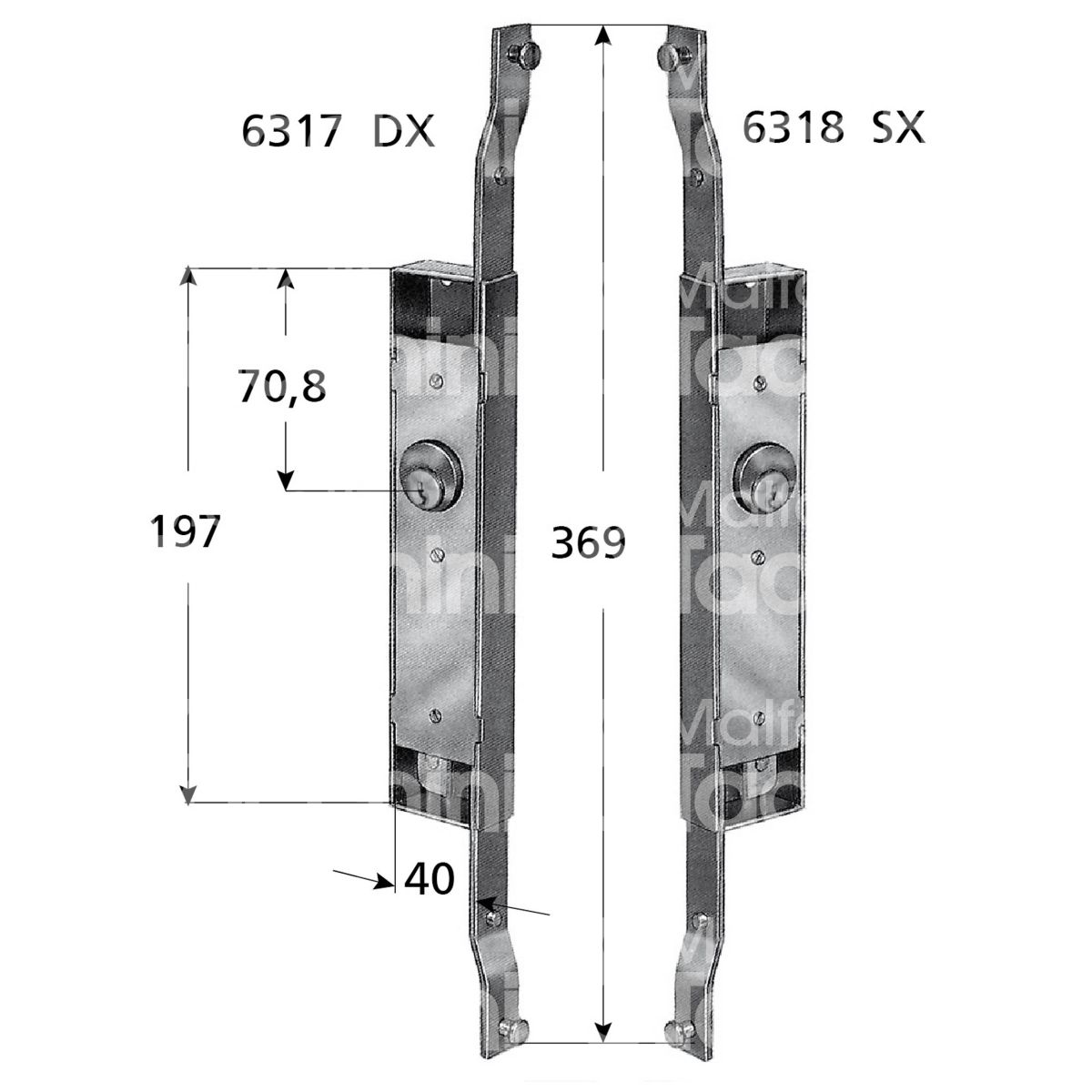 Prefer 6318 serratura per scorrevoli laterale foro tondo / chiave piatta cifratura kd