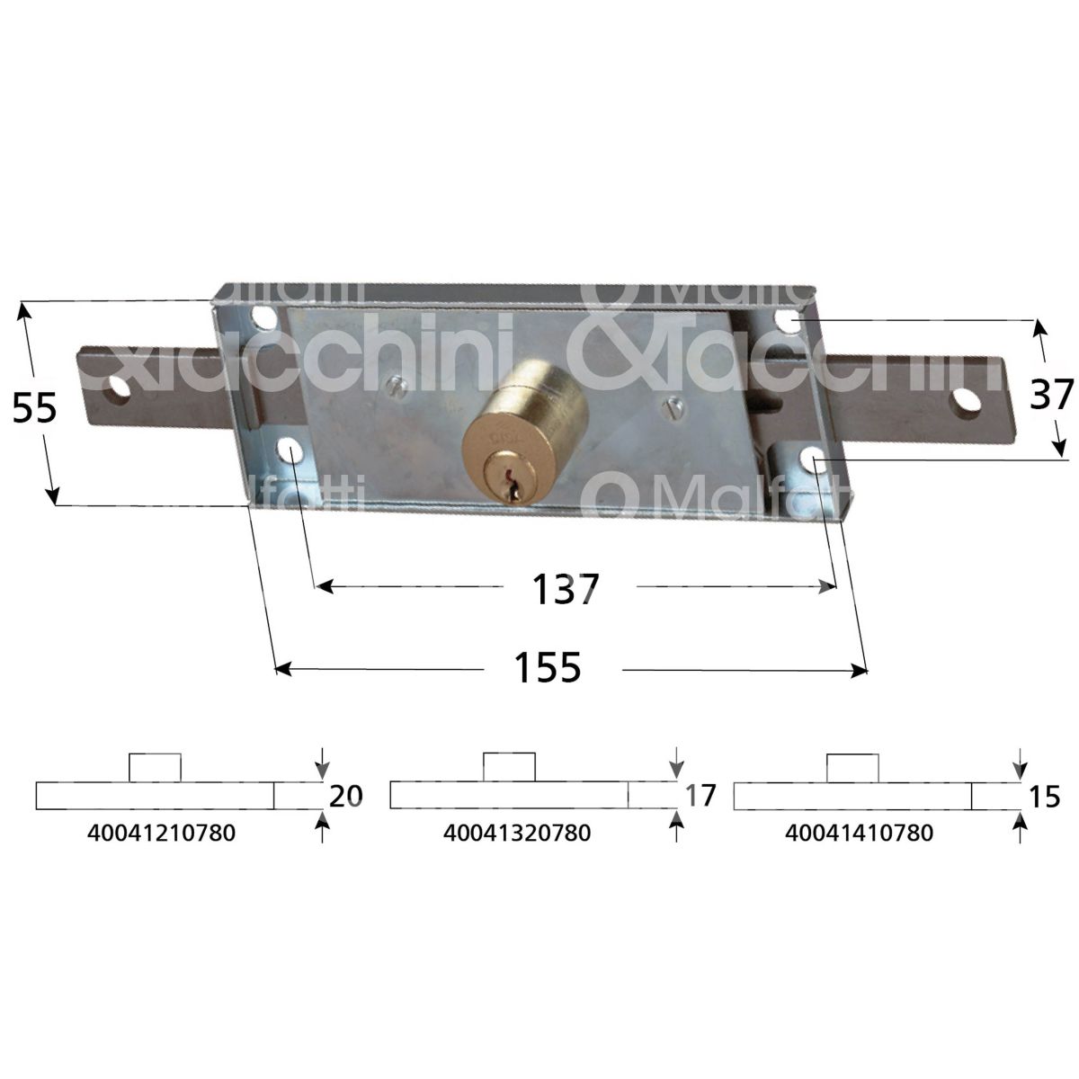 Cisa 41410780 serratura per serranda centrale foro tondo / chiave piatta cifratura kd