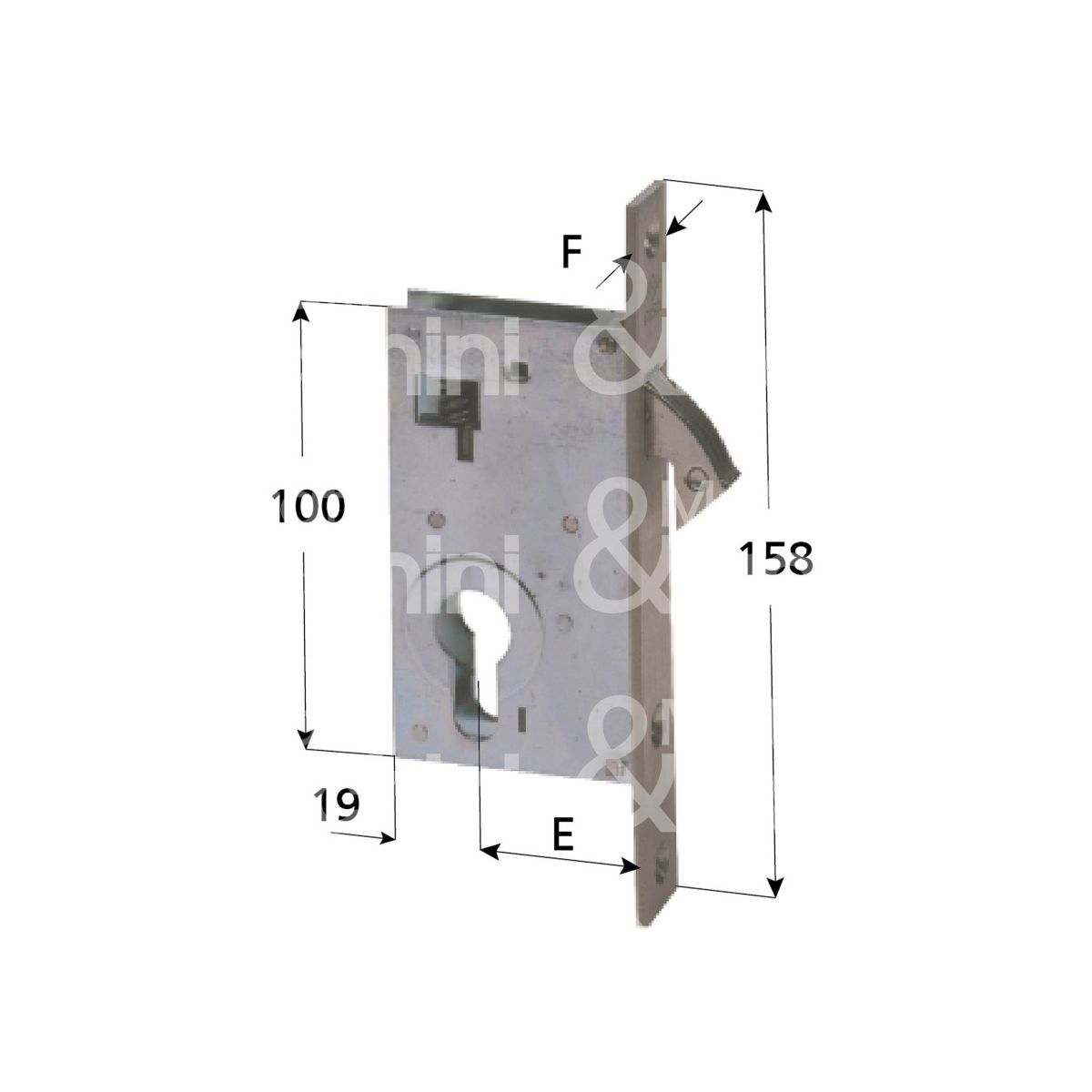 SERRATURA A GANCIO per scorrevoli Gancio in acciaio lamellare 1 mandata cilindro sagomato non compreso