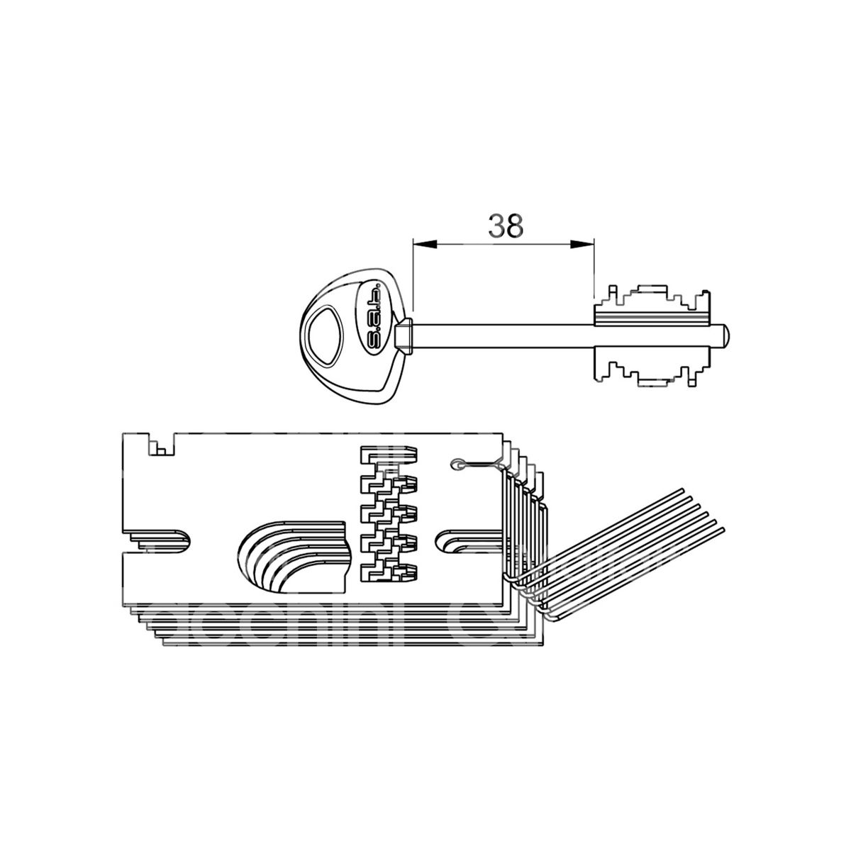 Sab 230 gorges ricambio ambidestra chiavi : 3 lunghezza 38 cifratura kd
