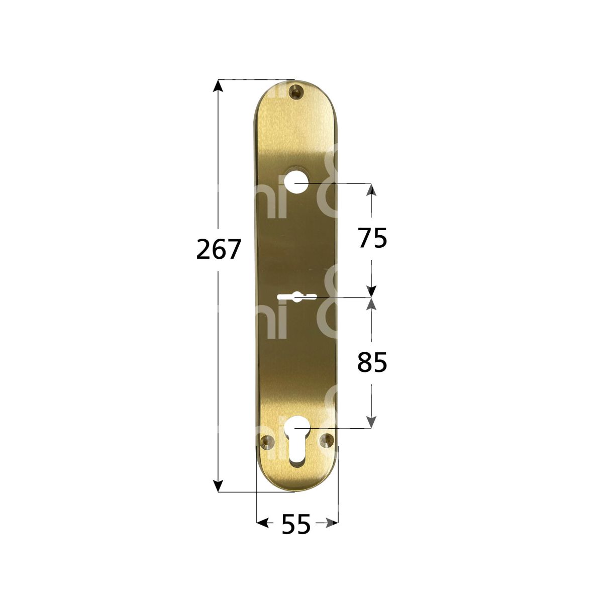 Fiam 98030800 placca foro maniglia con doppia mappa piÙ cilindro ottone satinato interasse 75 - 85 mm 267 x 55