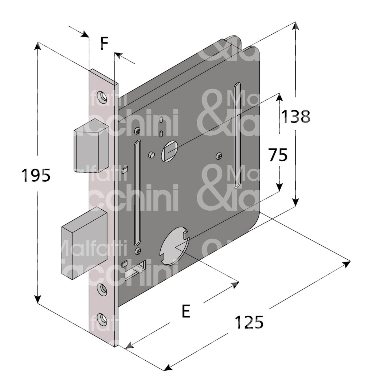 SERRATURA INFILARE 2 mandate e scrocco Cilindro tondo Ø 25 sfilabile non compreso
