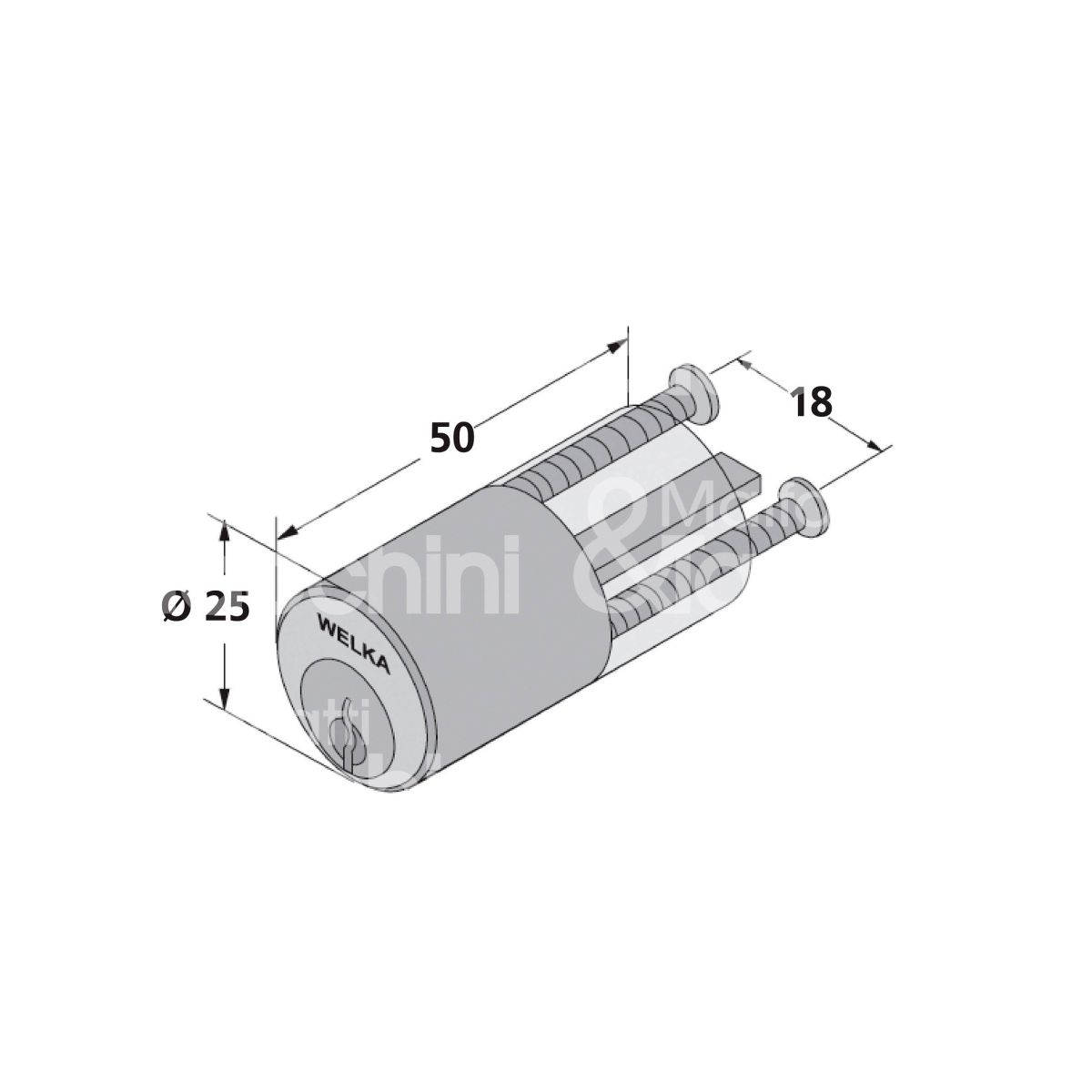 Welka 60300001 cilindro per ferroglietto fisso 50 mm Ø 26 chiave piatta profilo dx cifratura kd ottone satinato