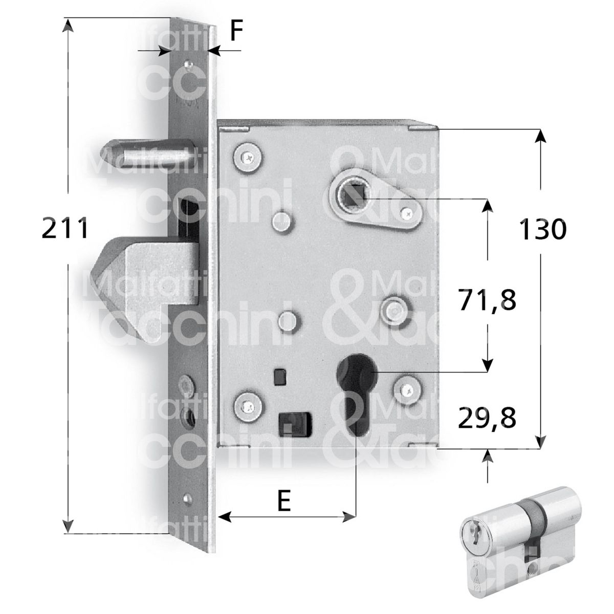SERRATURA INFILARE A GANCIO PER CANCELLI SCORREVOLI art. 77 QL 1 mandata e mezzo giro Frontale zincato Cilindro sagomato incluso confezione industriale