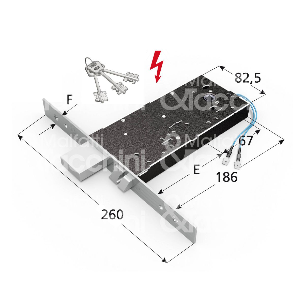 Omec 5938 elettroserratura per fasce laterale e 90 ambidestra foro doppia mappa 4 mandate frontale 25 x 260